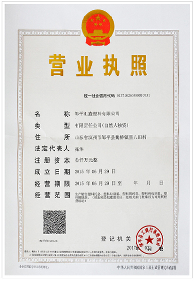 山東匯鑫塑料托盤(pán)生產(chǎn)廠家營(yíng)業(yè)執(zhí)照